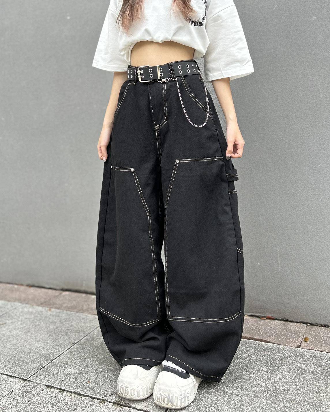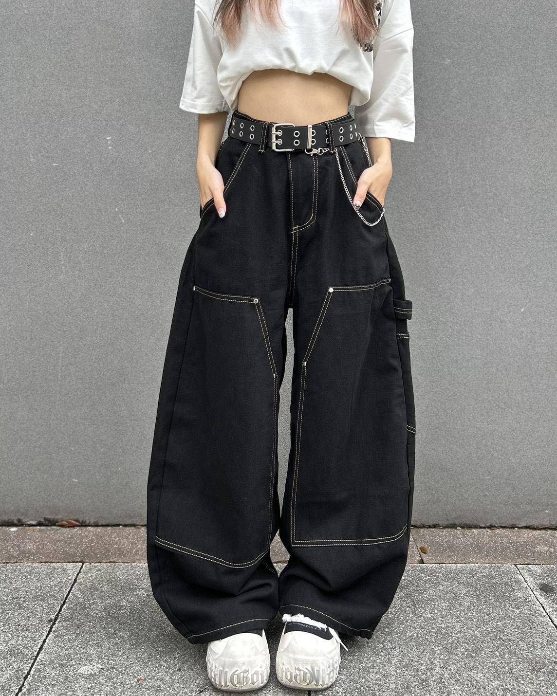 -高腰版型+工裝輪廓:視覺拉長腿型比例